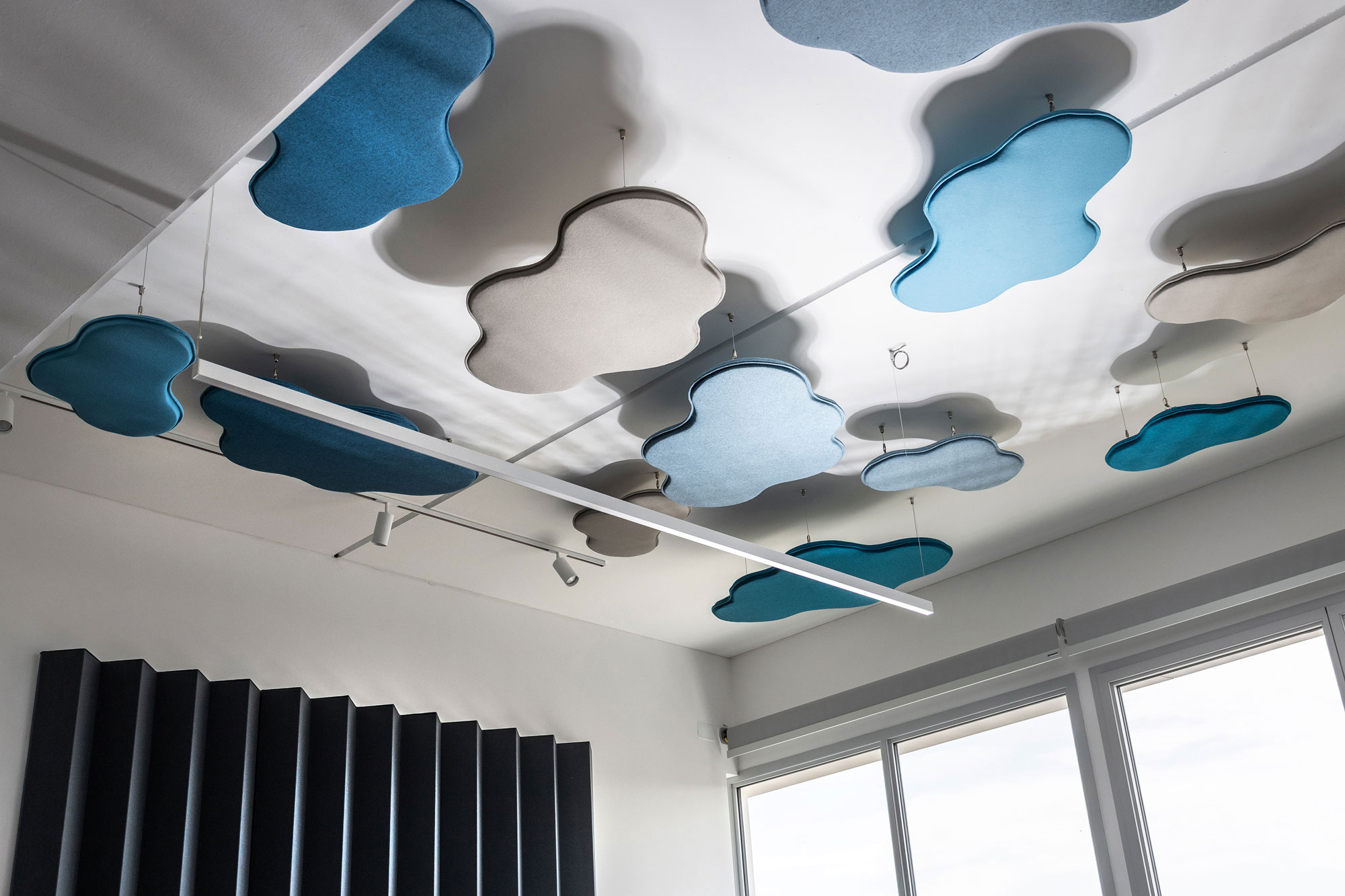 Eine breite Palette von schallabsorbierenden Paneelen, die entwickelt wurden, um den Nachhall in Innenräumen zu korrigieren – vom Büro bis zum Auditorium, von der Eingangshalle bis zum Besprechungsraum, von der Kirche bis zur Sporthalle. Sie bieten große Vielseitigkeit, da sie an der Decke, an der Wand und im umgebenden Raum angebracht werden können. Ausgehend von der für die akustische Korrektur erforderlichen Mindestfläche hat der Kunde die Möglichkeit, Größe, Menge, Farbe und Form zu wählen und damit auch ästhetische Anforderungen zu erfüllen.